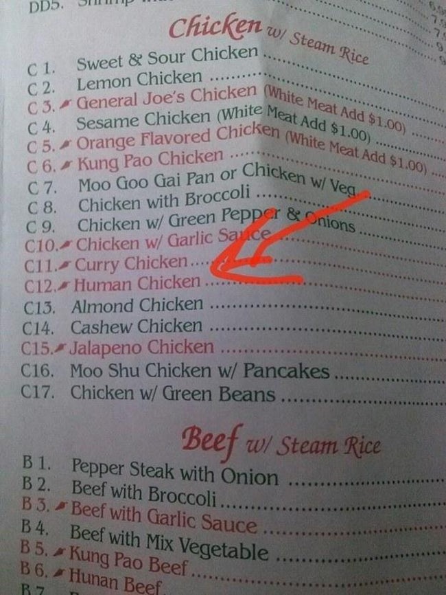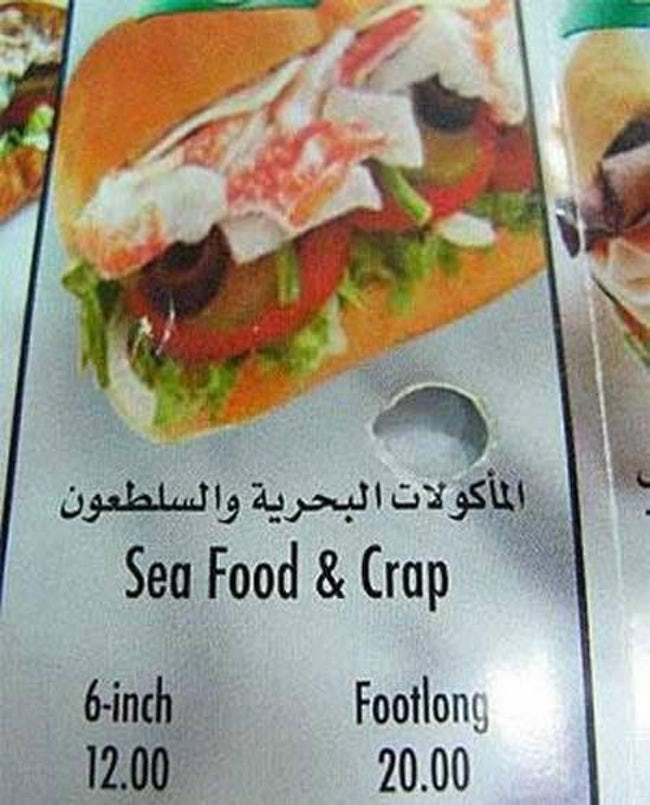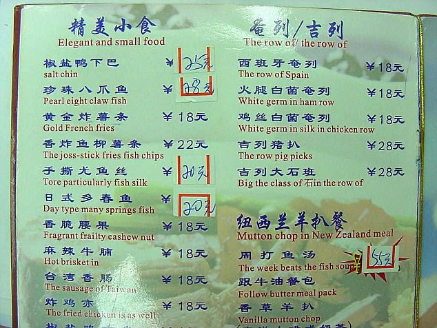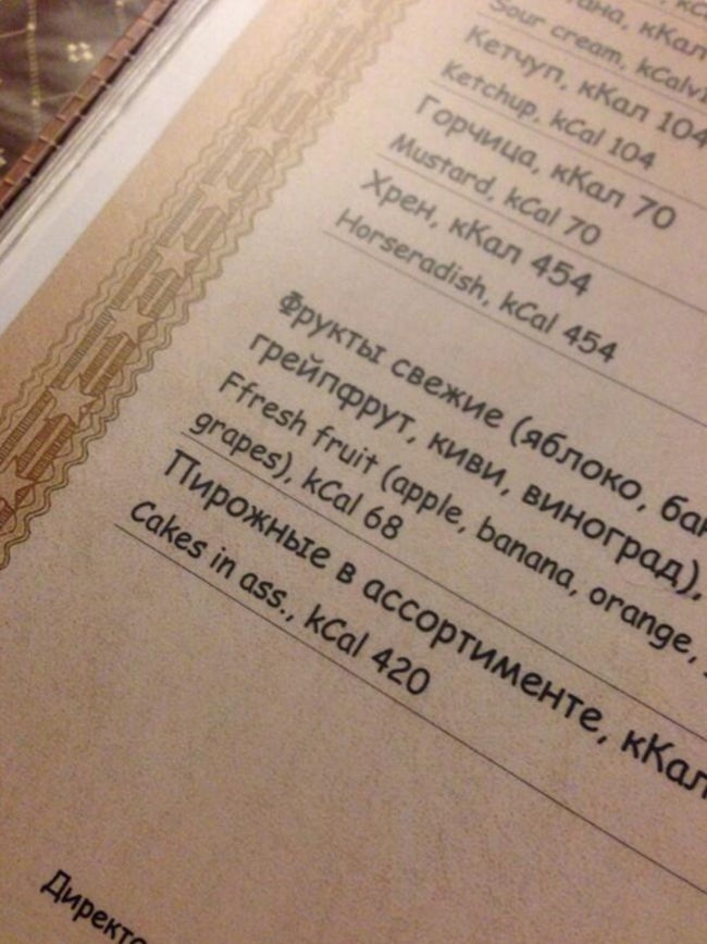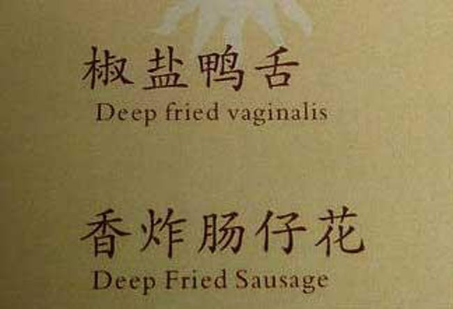 Worst Translations of Menu items to English