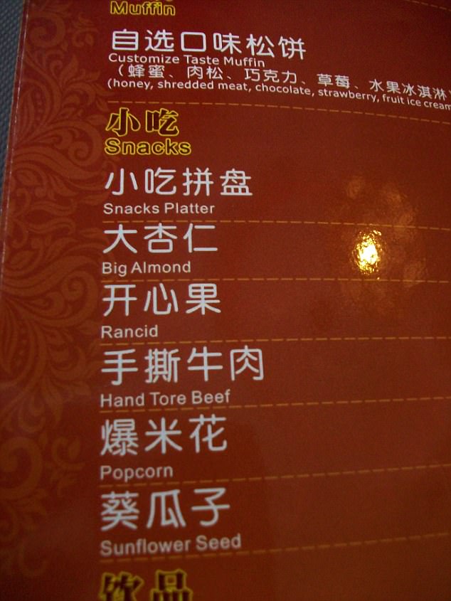 Worst Translations of Menu items to English